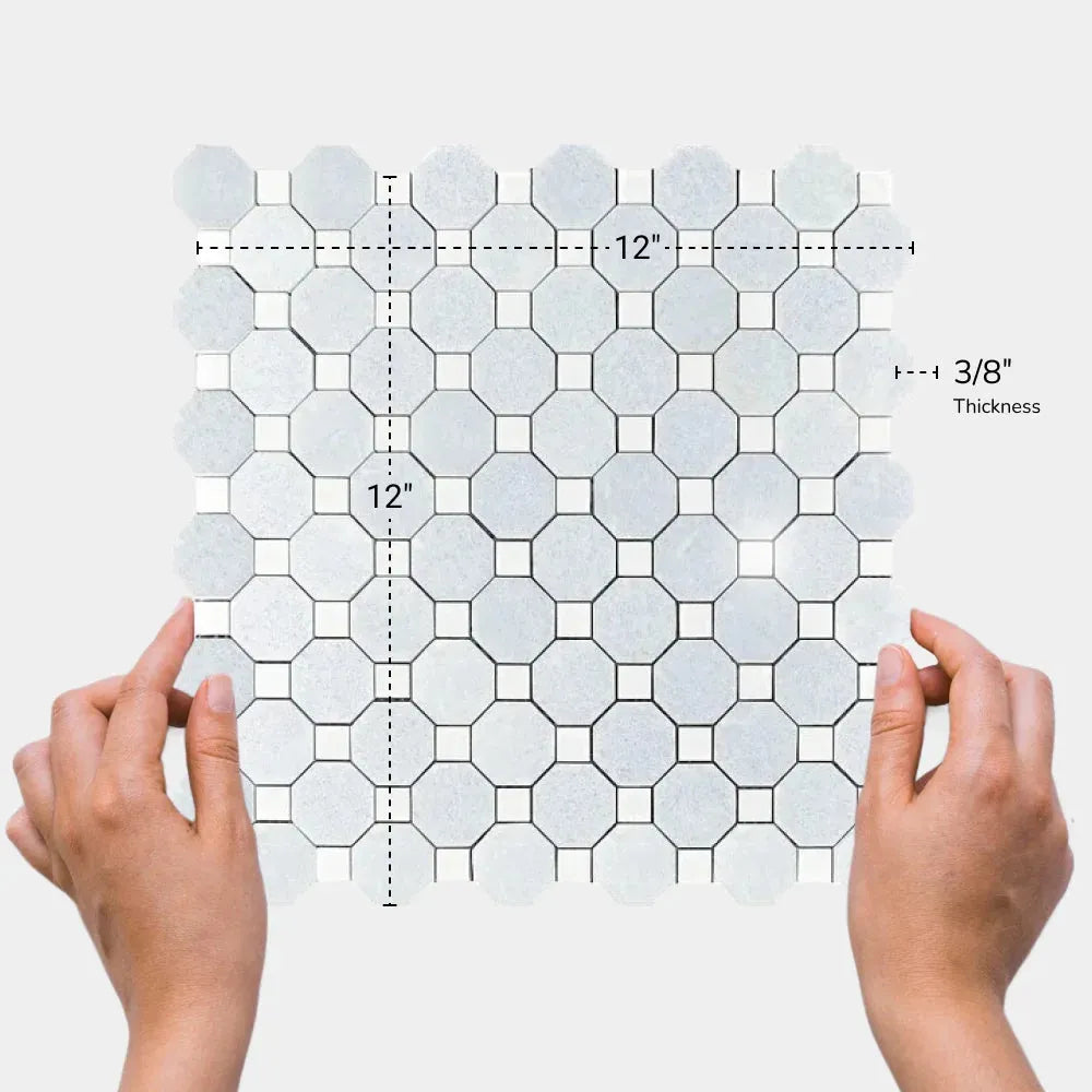 Blue Celeste & Thassos Marble Octagon Polished Mosaic Tile
