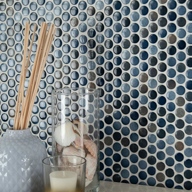 Grigio Gray Mix Penny Round Polished Porcelain Mosaic