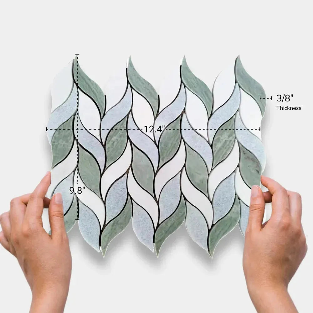 Verde Green & Blue Celeste & Thassos Marble Leaf Polished Mosaic Tile